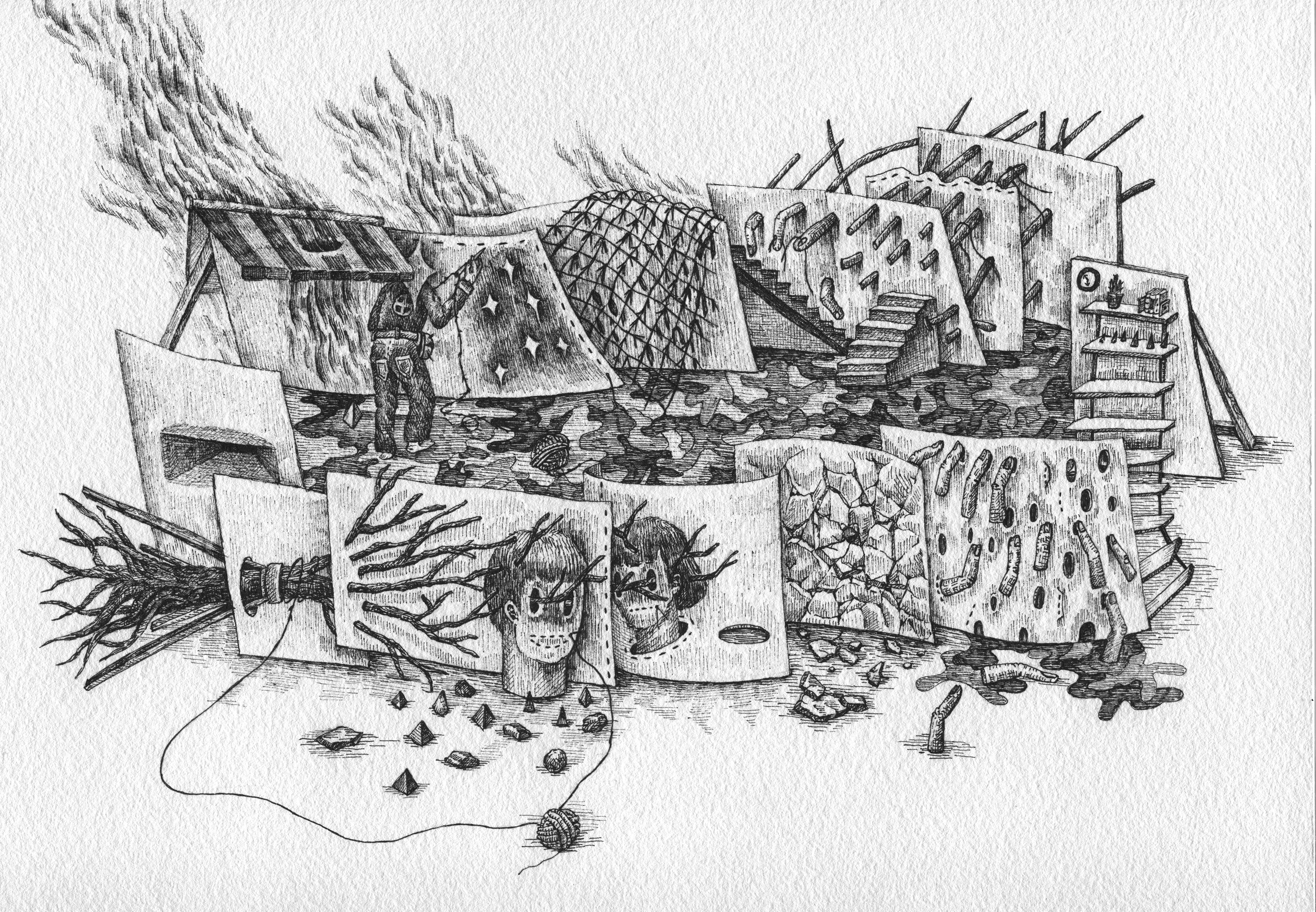 꿰어진 시간, 종이에 펜, 21x30cm, 2021